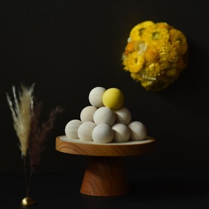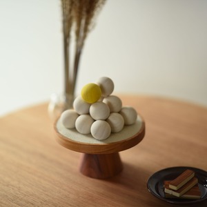 15個のお団子を再現しつつ、三方と呼ばれる台はインテリアになじむようモダンな形にしました。