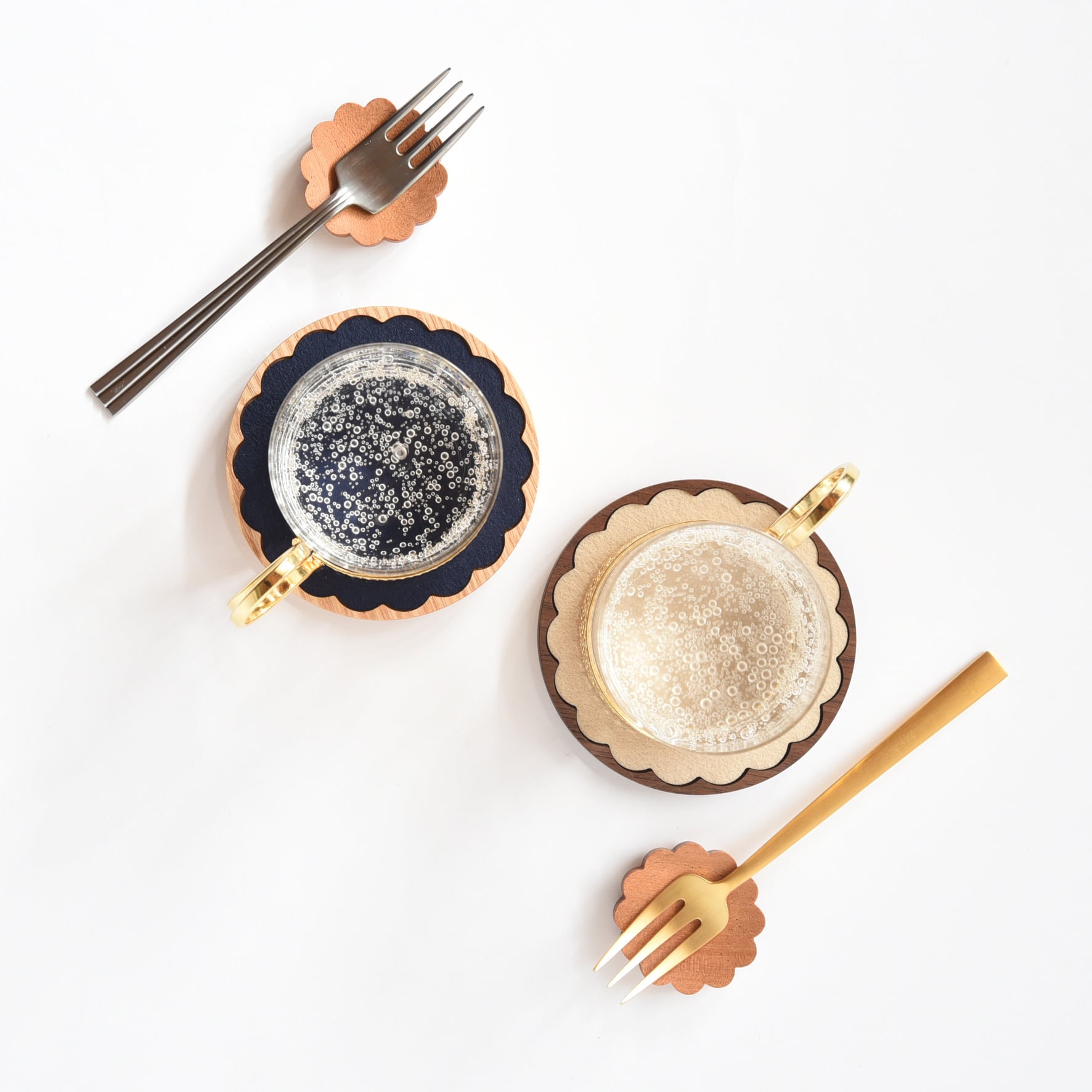 高品質なフェルト素材を使用し、飲み物の水滴をしっかり吸収!デザインだけでなく、機能性にもこだわりました。コースターの内側には滑り止め加工が施されており、安定感抜群です。