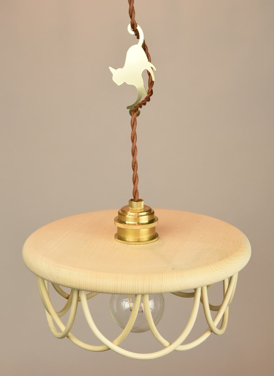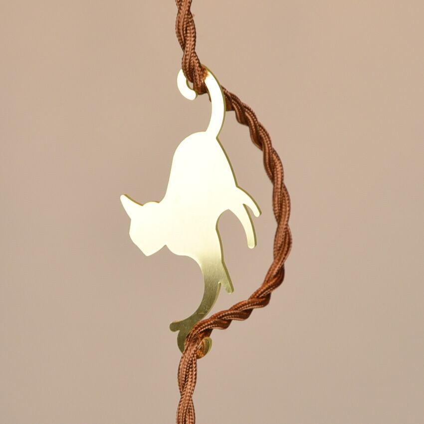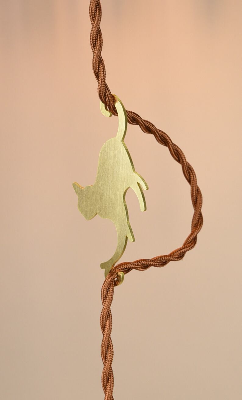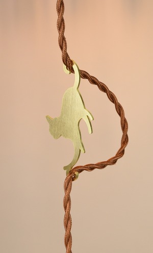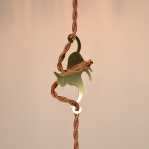 ネコのコードハンガー。 ボールと戯れるネコです。 ペンダントライトの長さを変える!コード調整器。 ネコの周りをクルっと一周すれば、さらに長さを短く調整できます。 コード太さ 直径 Φ6mm用 サイズ L 99mm W 50mm 素材 真鍮