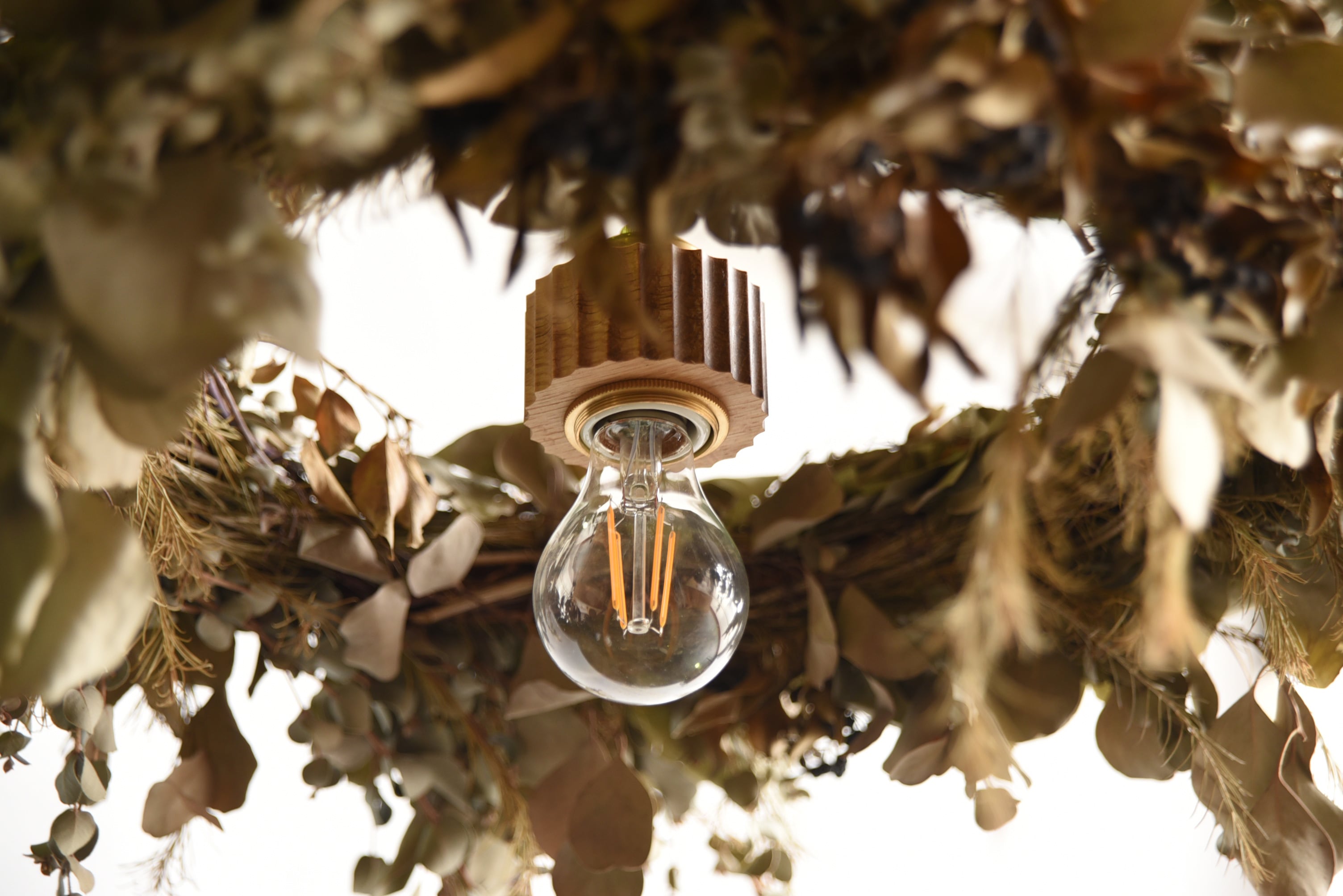 電球との高さバランスを微調整したいときはネジを緩めて上下に移動できるため、リースに当たる光の加減や、光の落ち方をカンタンに調整できるのが特徴です。