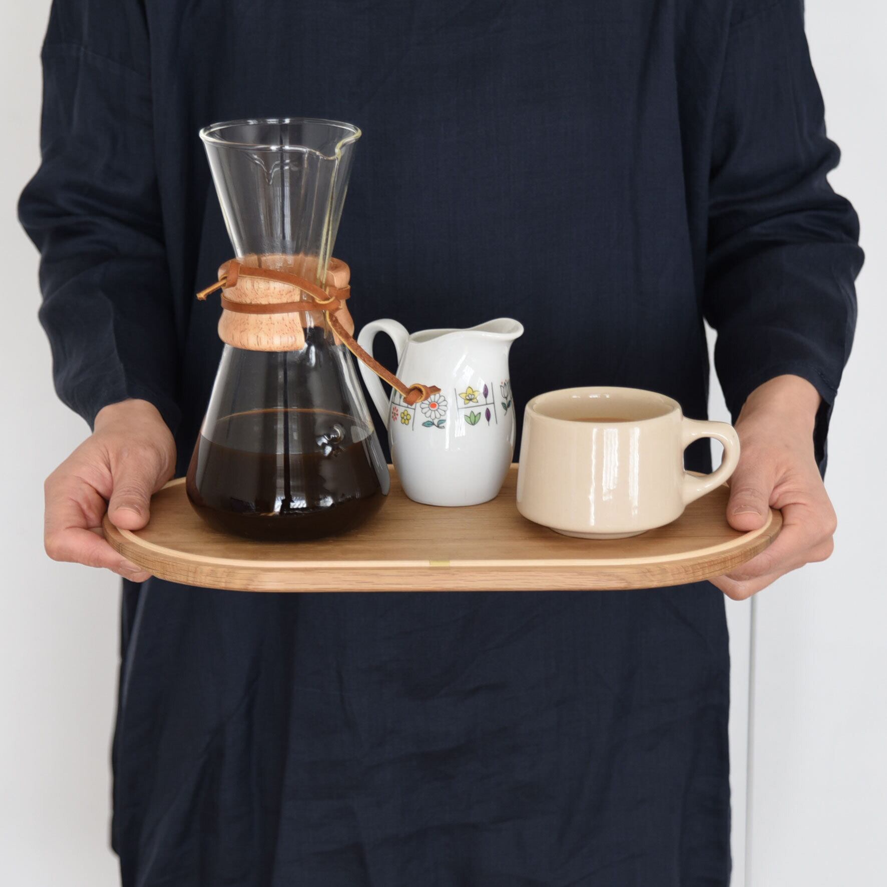 ならと籐と真鍮。 コーヒーの道具を一式置く。 そのままランチョンマットとして。 立ち上がりが低いですがおぼんとしても◎ もちろん紅茶の方にもおすすめです。 オイル仕上げ。 サイズL360mm W200mm 厚み12mm 素材 なら 籐 真鍮