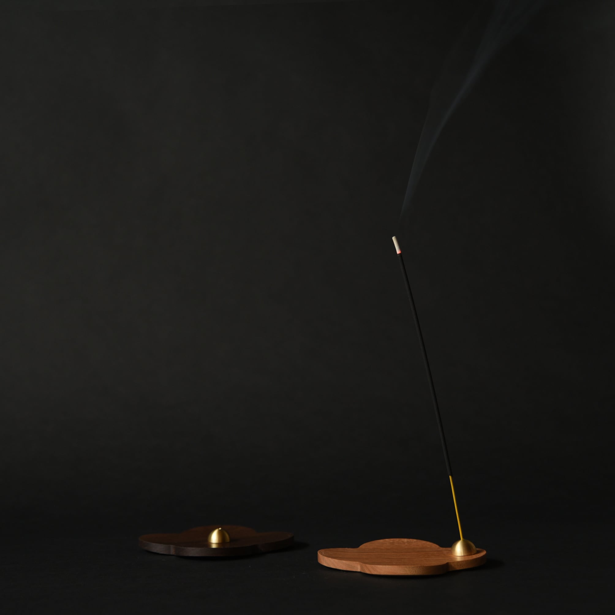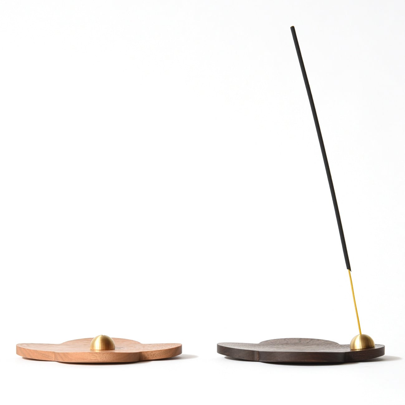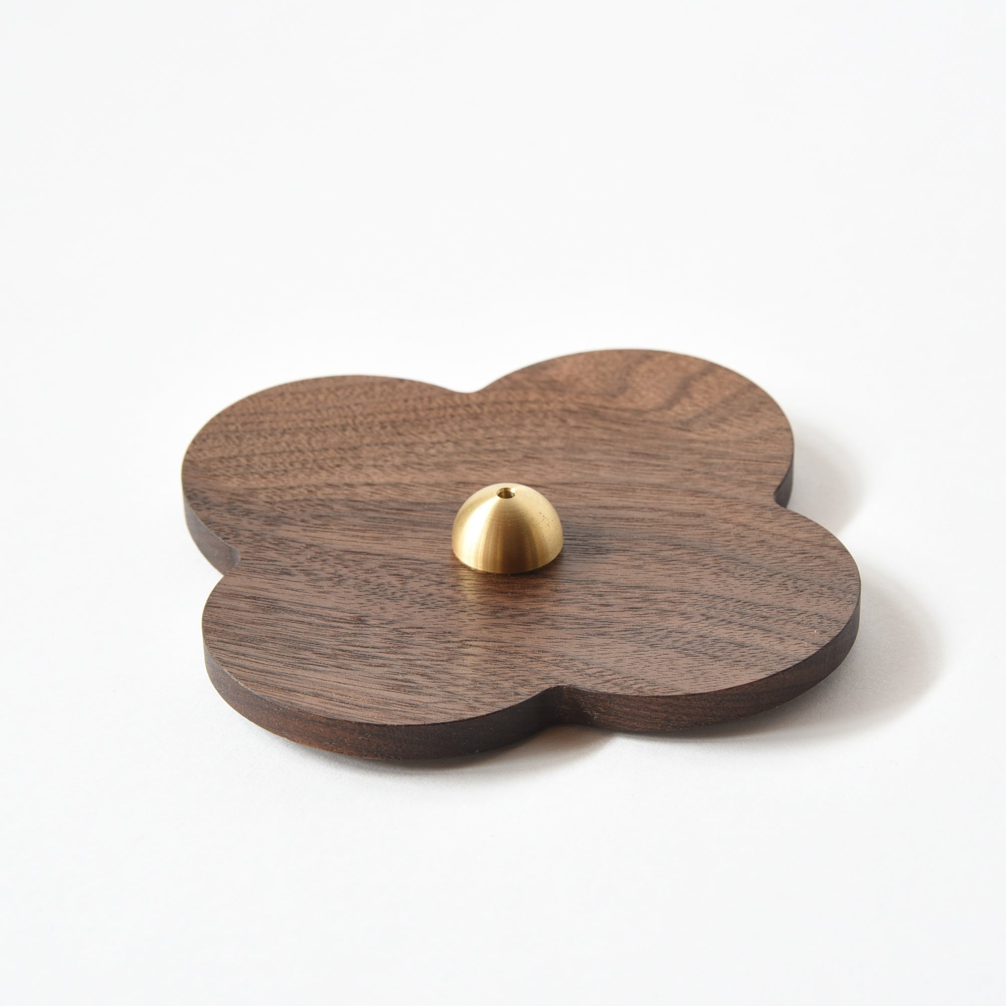 インセンスホルダー 四葉のお香立て。 四葉のトレーは傾斜がついており、真鍮のパーツは自由に配置できます。 真鍮パーツの穴あけはΦ2.5mm。※2.5mmまでの直径のものをお使いください。 それより細いもの用にスペーサーを3種類(穴径Φ1.5mm、Φ1.7mm、Φ2.0mm)おつけいたします。