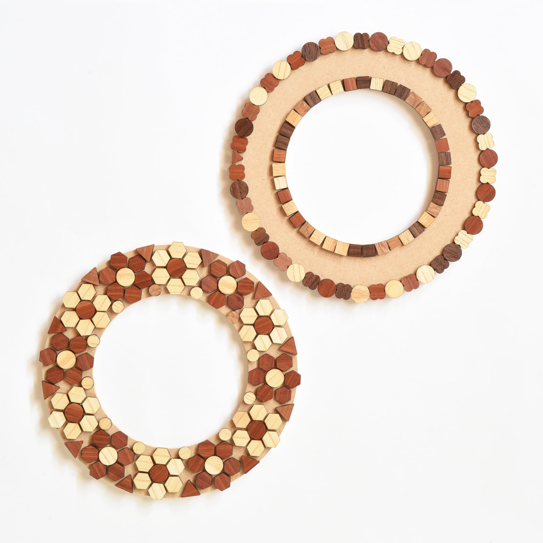 並べるだけでも楽しいですし、お子様と一緒に余った瓶などに貼り付けたり額縁や鏡の枠に装飾してもいいですね。
