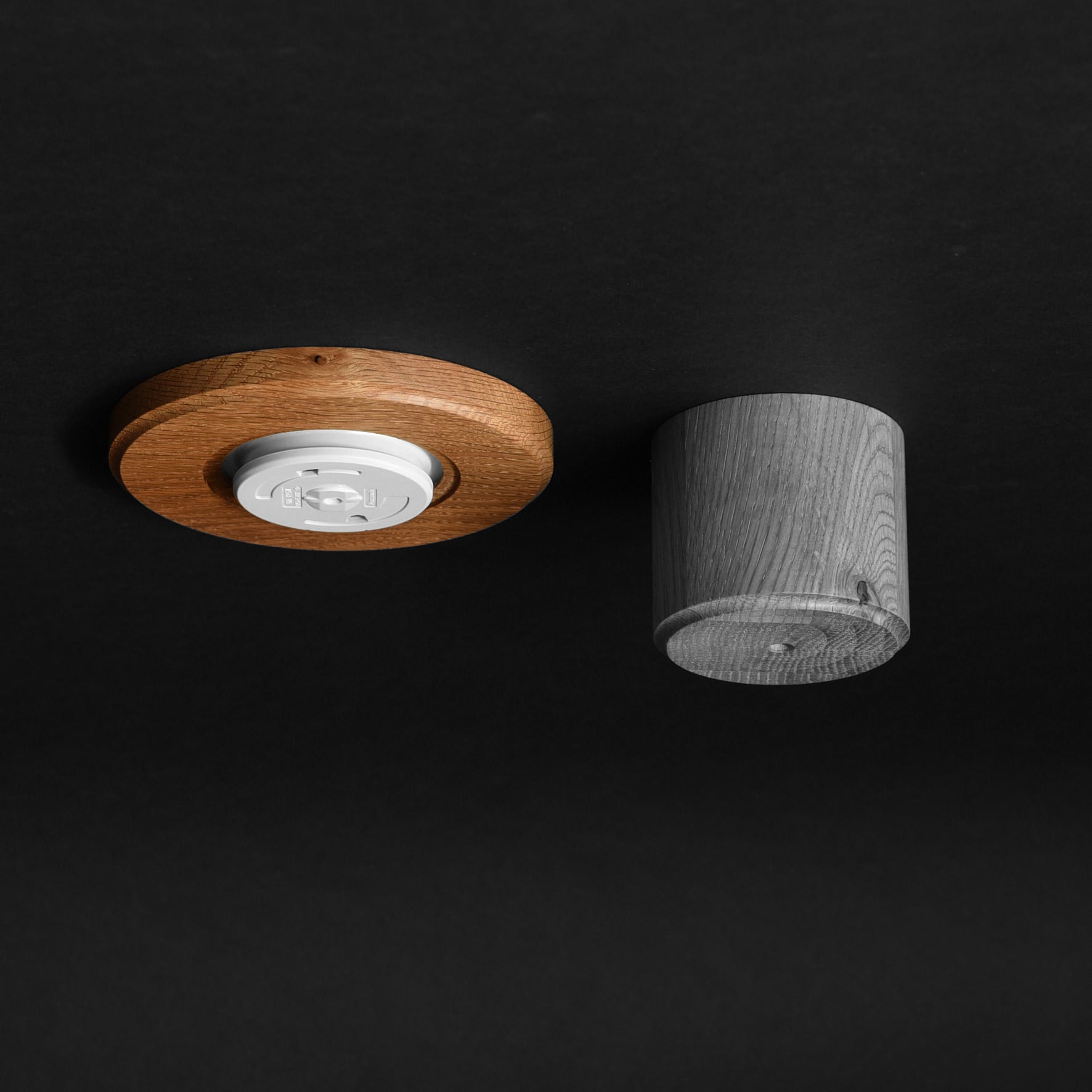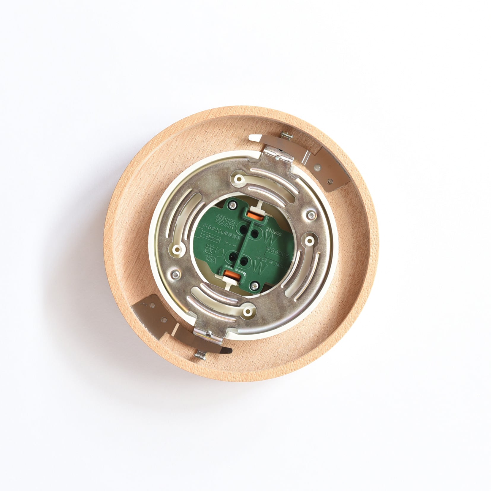左から なら,ウォールナット,サクラの木製シーリングカバー ローゼット用プレート。