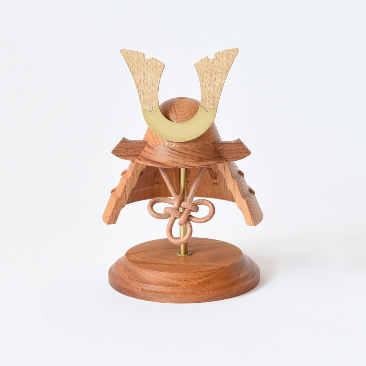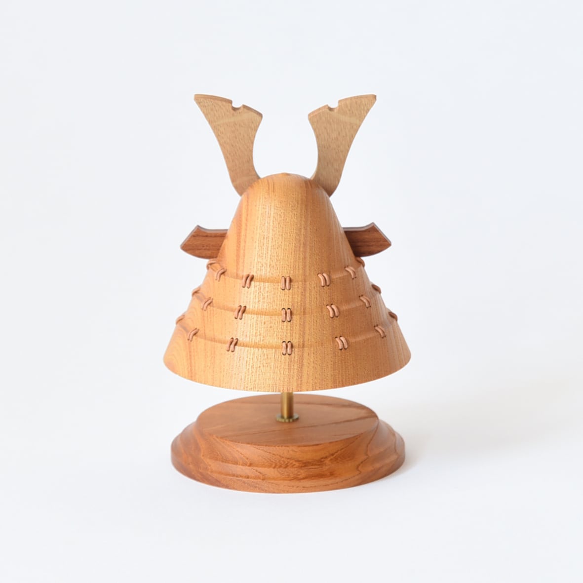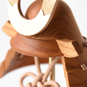 手のひらに納まるサイズの木製兜。