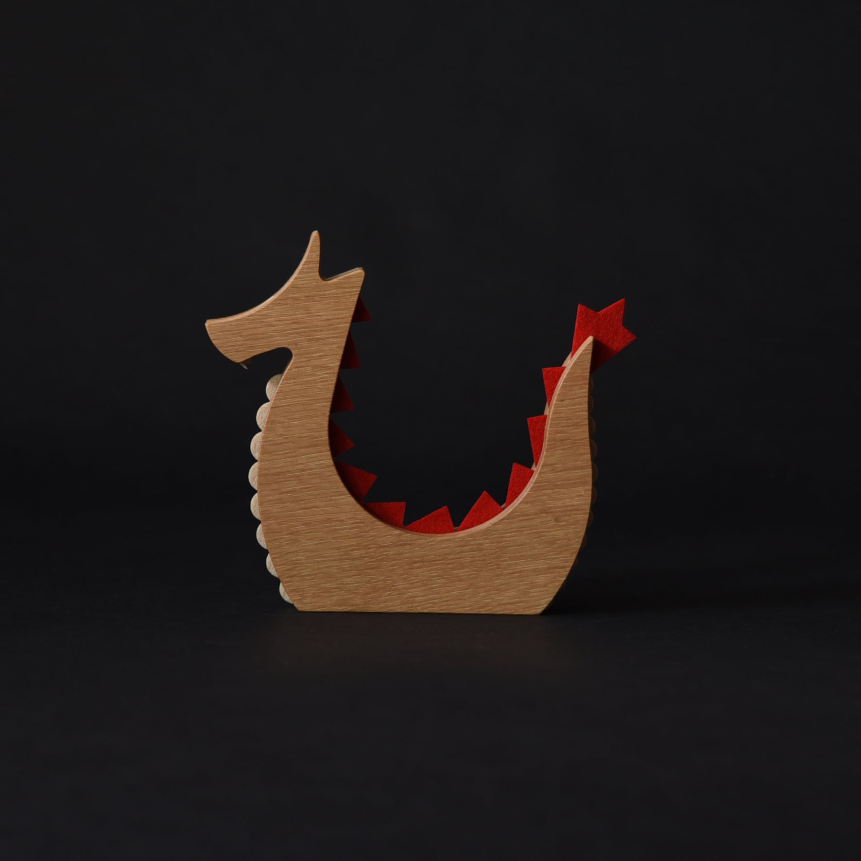 [受注生産品] 干支シリーズ ならとフェルトで製作した「りゅう」。 背びれとおなかをフェルトで表現しました。 発送まで受注後約3週間程度 サイズW 146mm H 143mm D 22mm