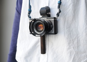 硬質なローズウッドとステンレスが、カメラの質感にマッチします。