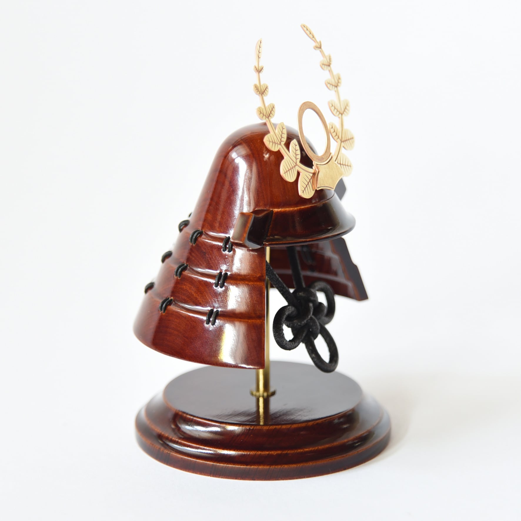木目が透けてみえるきれいな色味と、エッジが薄い色になって造形の複雑さをより強調した特別な兜。